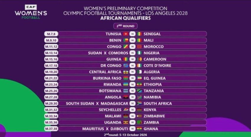 “Now that we have seen the draw, it will help us plan thoroughly for the qualifiers. But for now, we cannot lose focus of what is ahead of us, the Women’s Africa Cup of Nations (WAFCON 2026), which is equally important as it gives us the ticket to the World Cup in Brazil. We want to make it three in a row. Once the competition has concluded in Morocco, the entire focus will shift to the Olympic qualifiers.”