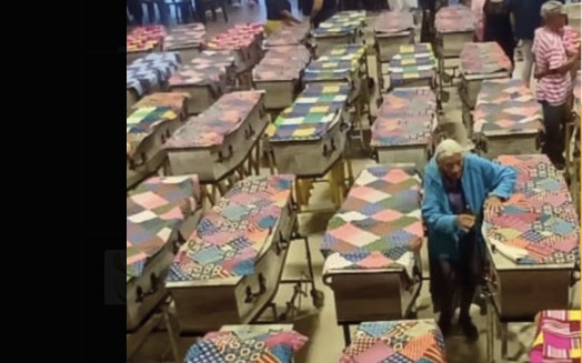 Rows of freshly dug graves lined the site as the wooden coffins, some draped in traditional clothing, were laid side by side.