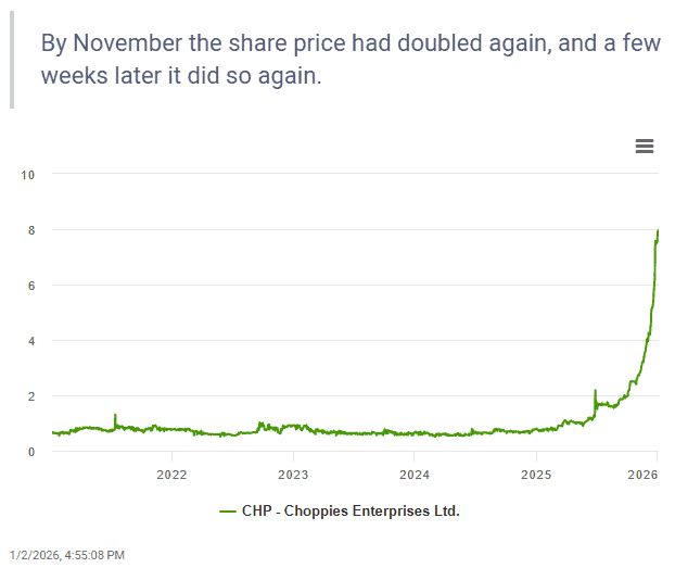 It would be fairly safe to assume that very few investors – if any – expected that Botswana retailer Choppies Enterprises would be the best-performing share on the Johannesburg Stock Exchange (JSE) in 2025.
