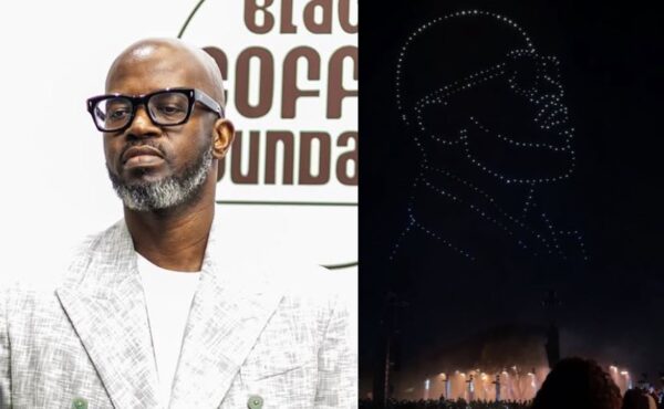 Clips circulating on social media show a fleet of illuminated drones lighting up the night sky, choreographed to form Black Coffee’s silhouette above the pyramids.