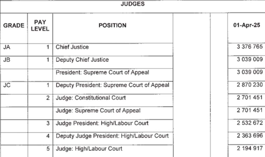 Special grade chief magistrates will receive a salary package of more than R1.7 million. This is a senior judicial position, often equal in rank and pay to a regional court president. They are among the highest-paid magistrates.