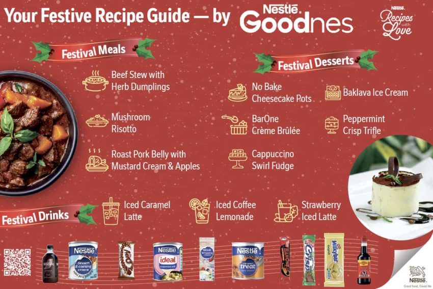 No holiday meal is complete without dessert. Festive treats have a way of turning a simple meal into something memorable. Whether it’s No-Bake Cheesecake Pots that melt in your mouth, Baklava Ice Cream for a sweet twist on a classic, or the iconic Peppermint Crisp Trifle, layered with caramel, cream, and chocolate, there’s something to delight every palate. Even chocolate lovers can enjoy a creamy BAR-ONE dessert, while coffee enthusiasts might savour a Cappuccino Swirl Fudge that pairs rich chocolate with a hint of caffeine.