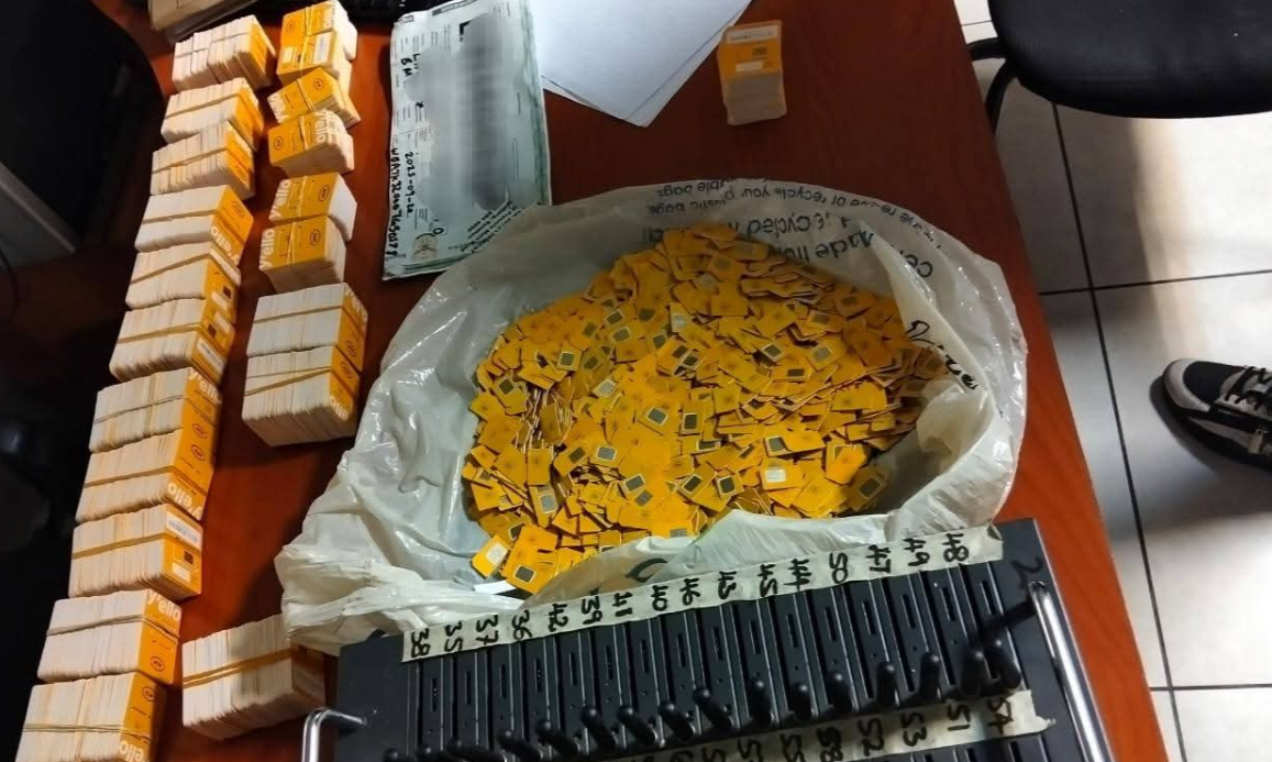 A subsequent search of the car uncovered a large plastic bag containing more than 4,000 suspected stolen MTN SIM cards. Officers also recovered a device believed to be a signal jammer or SIM card registration machine.