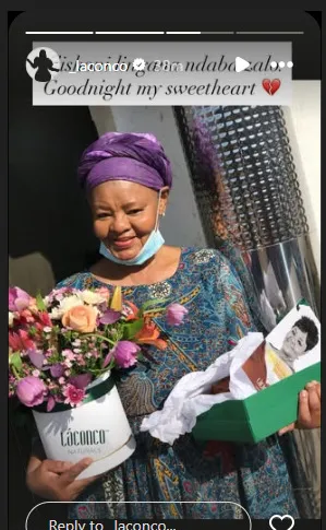 “Grateful for the love we shared while time permitted. Hamba kahle ma [Go well ma]. Sending my condolences to her family, friends, and isizwe sonke sidabukile [the whole nation is hurting],” wrote LaConco.