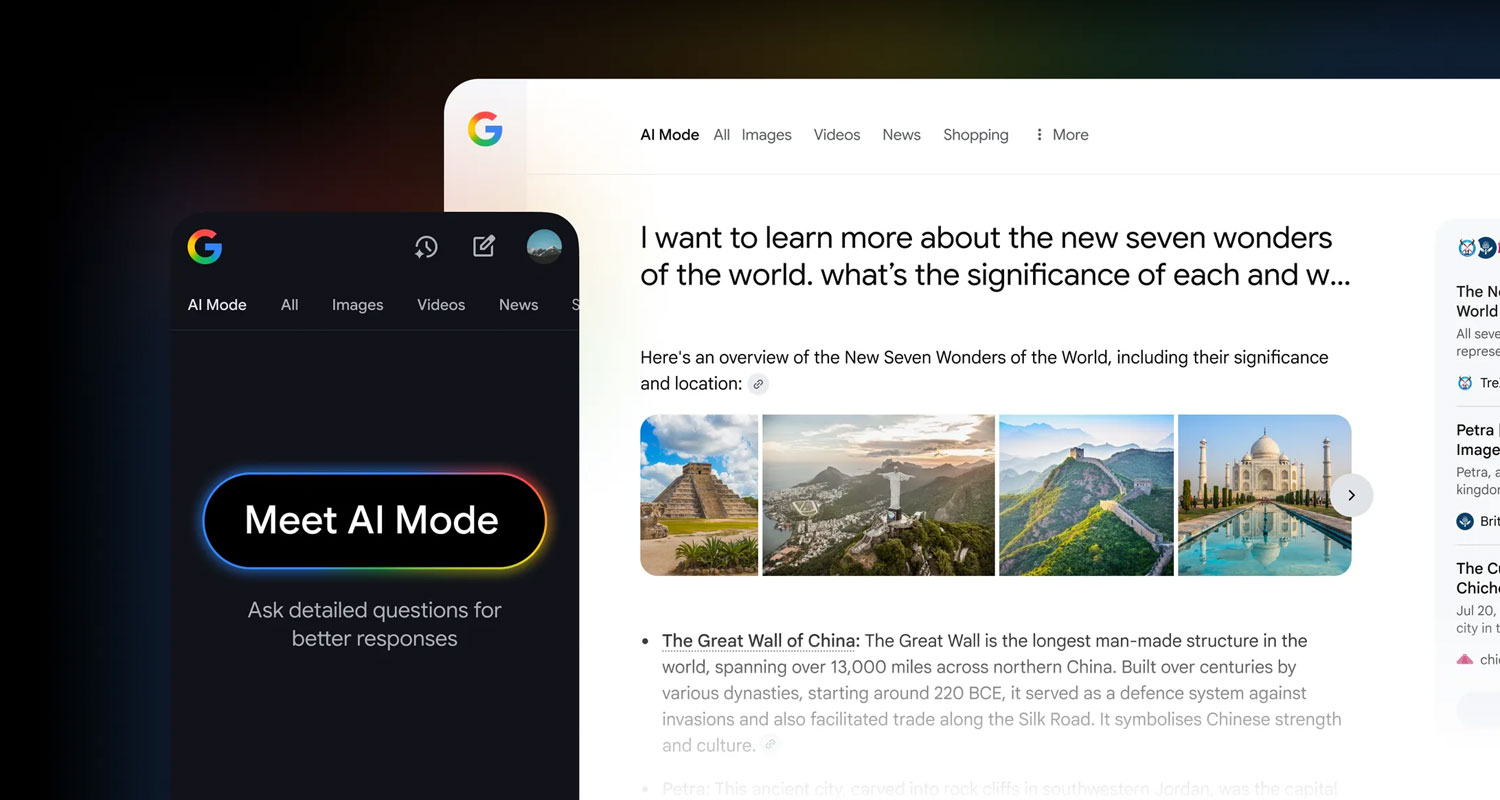 AI Mode is also multimodal, allowing users to interact through text, voice or even images. Like AI Overviews, AI Mode’s responses include prominent links to web sources.