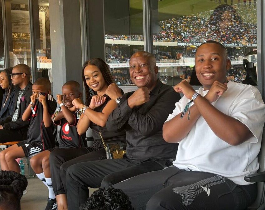 The internet went into a frenzy after Economic Freedom Fighters (EFF) leader Julius Malema and his family were spotted at FNB Stadium watching the Soweto derby.
