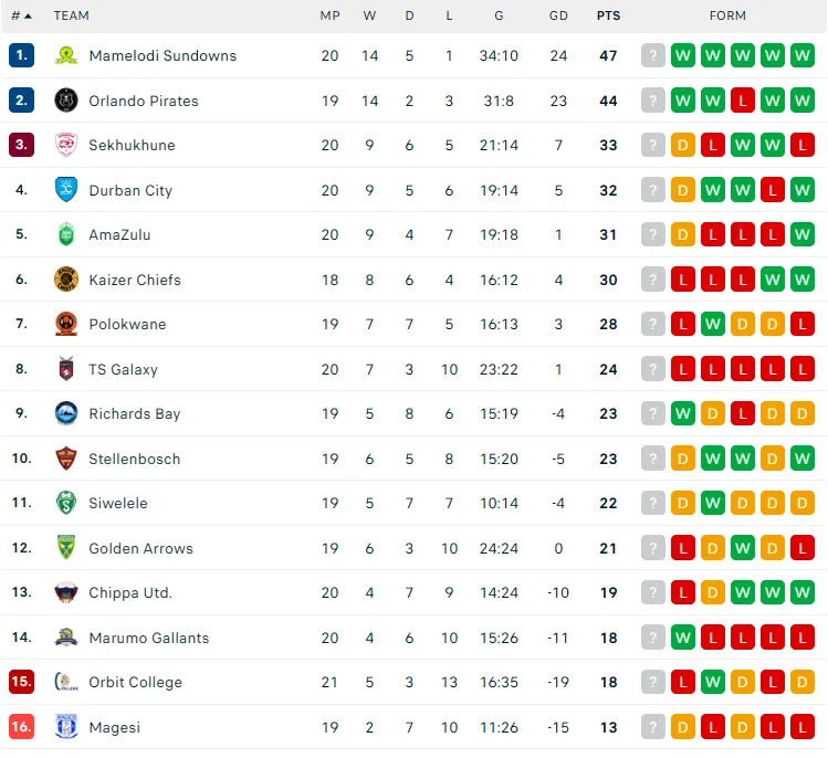 They are separated from top-ranked Mamelodi Sundowns by three points, but do have Wednesday’s match in hand over Masandawana.