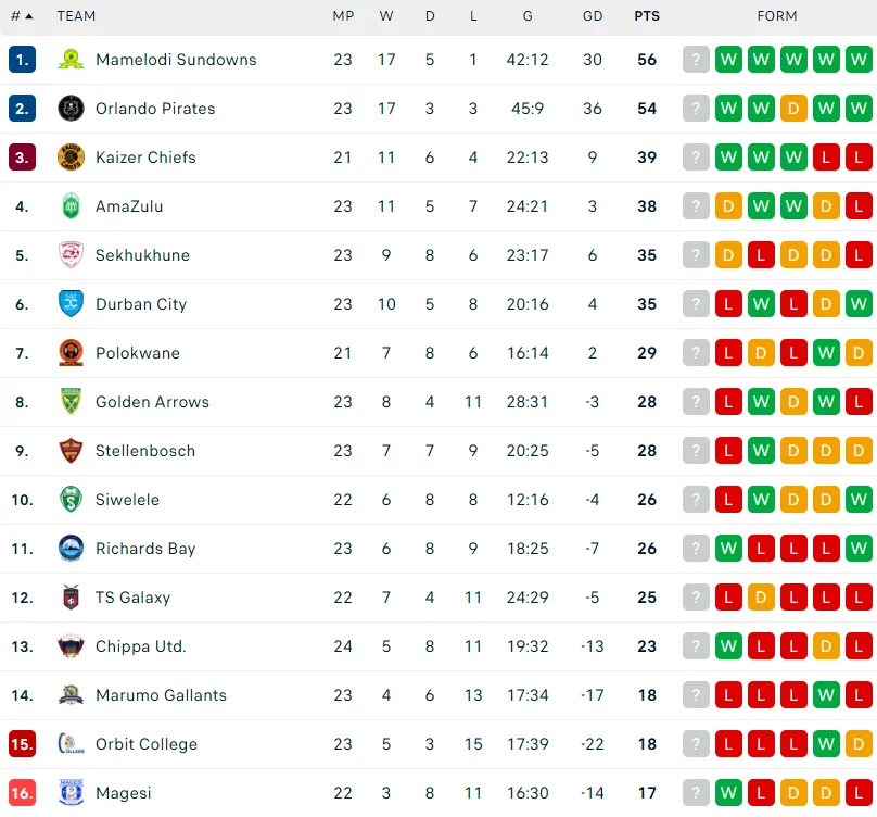 Orlando Pirates have a favourable run-in to the end of the season, with several of their remaining matches scheduled against teams currently in the bottom half of the table.