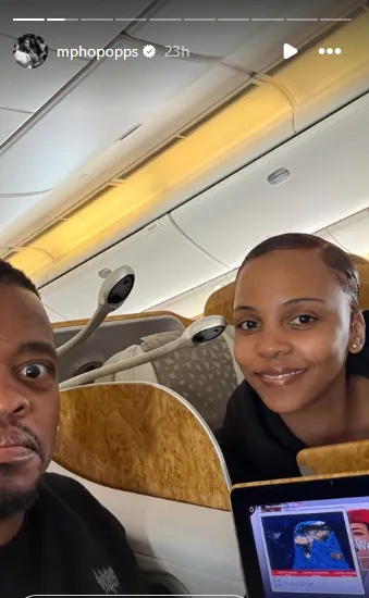 Business class or nothing: The couple flew in absolute style! Image via Instagram/@mphopopps