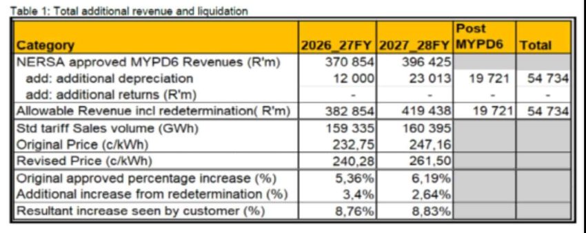 Follows a redetermination of Eskom’s revenue to correct previous regulatory errors.