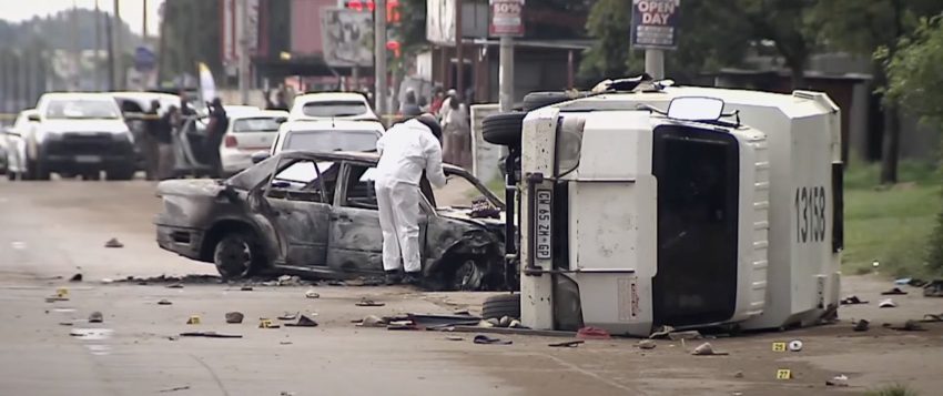 According to the South African Police Service (SAPS), the suspects used a white Mercedes-Benz to force the cash-in-transit vehicle to capsize.