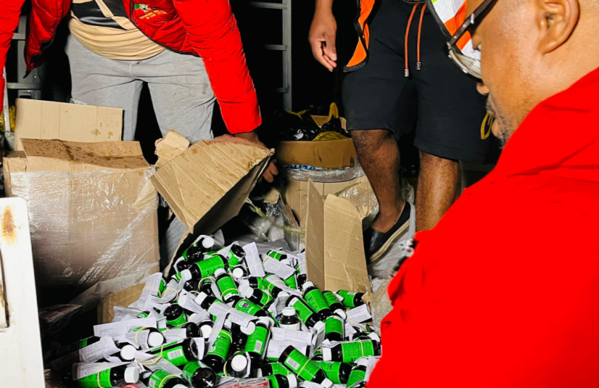 According to a statement released by Tshwaku, the haul included a large quantity of prescription cough syrup containing codeine (a Schedule 5 controlled substance not available over the counter) and processed dagga with an estimated street value of approximately R2 million.