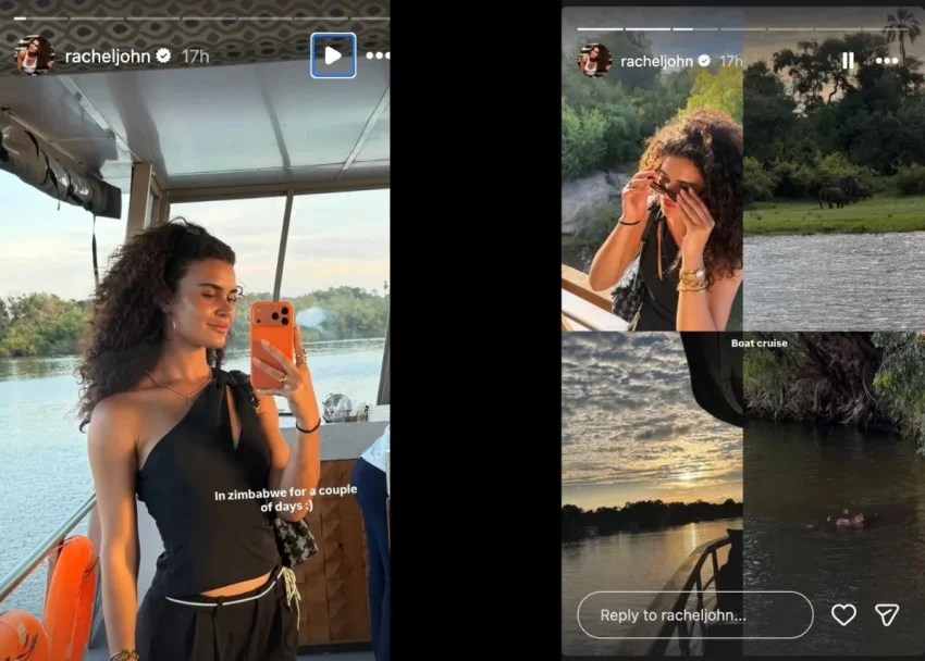 Siya’s rumoured girlfriend, 25-year-old influencer Rachel John, also revealed that she was spending a few days in Zimbabwe via her Instagram Stories. Take a look…