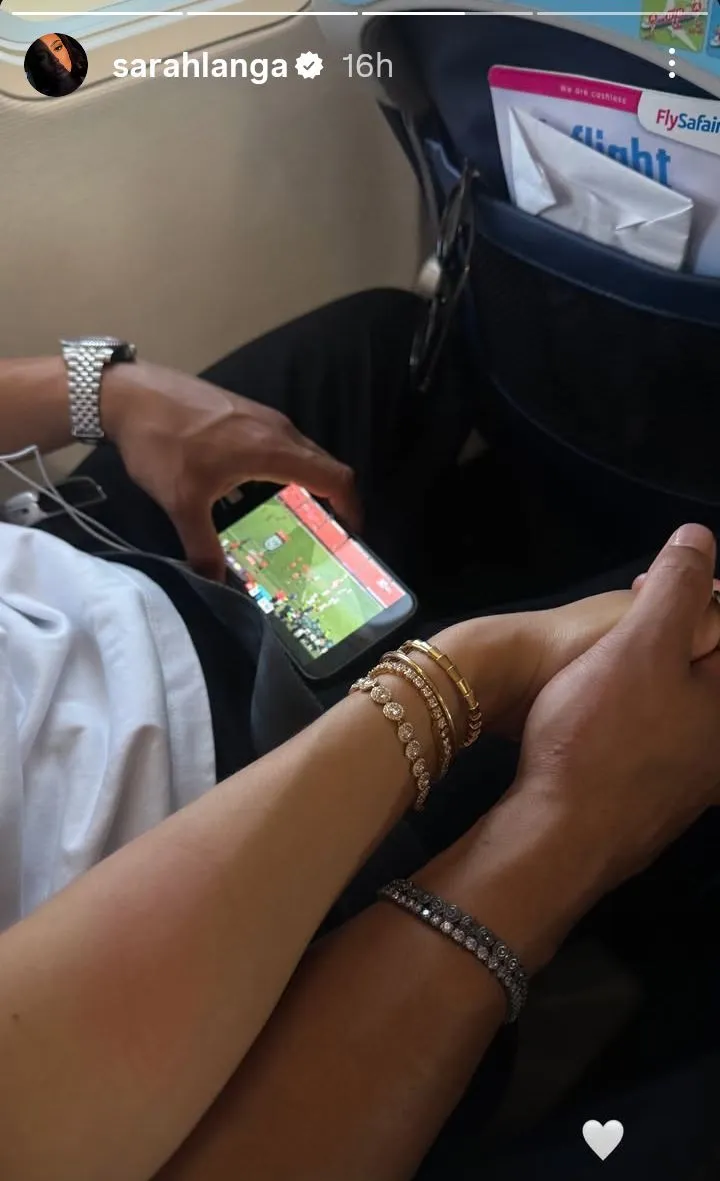 However, over the weekend, the fashion influencer posted an Instagram Story of her holding hands with a man while seated on a local airplane. In the pic – which Sarah added a heart emoji to – the supposed couple sported matching diamond bracelets.
