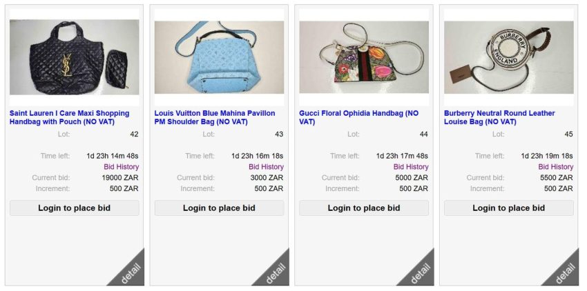 Some of MaMkhize’s luxury bags on auction. Picture: Screenshot