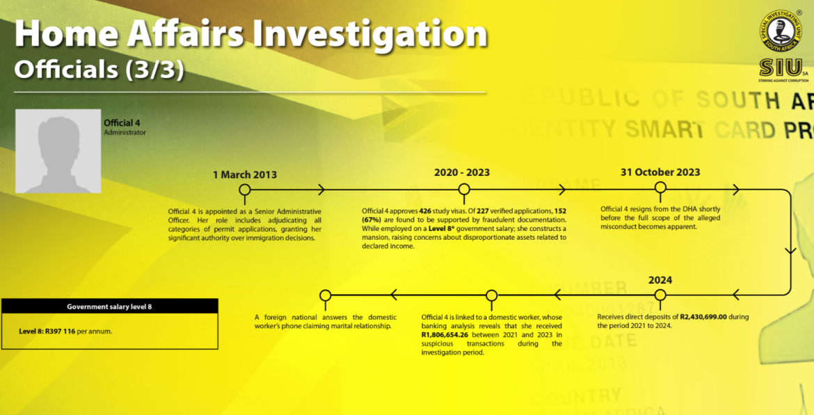 Acting SIU head Leonard Gaoretelelwe Lekgetho revealed that just four officials despite modest salaries accumulated approximately R16.3 million in bribes.