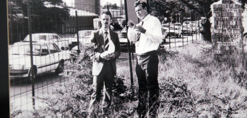 - Main image: M-Net’s first chief technology officer, Jock Anderson (left), with co-founder Koos Bekker at the site in Randburg, Johannesburg where MultiChoice Group’s head office is located today. Image courtesy of MultiChoice.