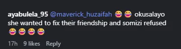 Instagram user @ayabulela_95 wrote the following comment, which prompted a heated response from Unathi as seen in the second screenshot.