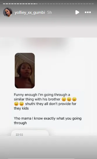 An Instagram user sent a private message to Yolanda, stating that it seems irresponsibility runs within the Mdletshe family, because she is also going through the same with Mpilo’s brother.
